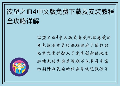 欲望之血4中文版免费下载及安装教程全攻略详解