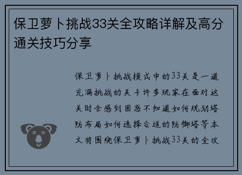 保卫萝卜挑战33关全攻略详解及高分通关技巧分享